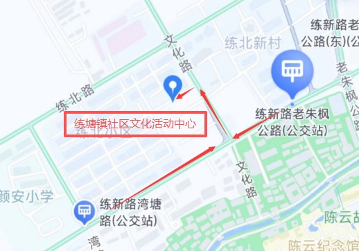 (2)乘坐练塘1路、练塘4路至练新路湾塘路(公交站)