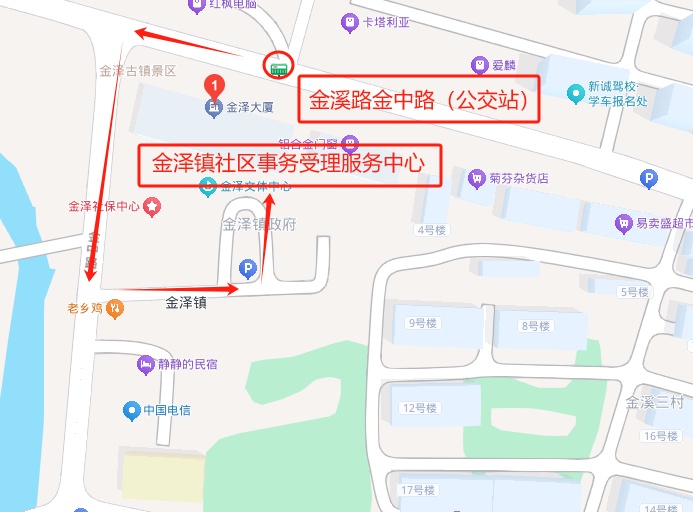 (1)乘坐金泽1路、金泽3路、青浦36路至金溪路金中路(公交站)