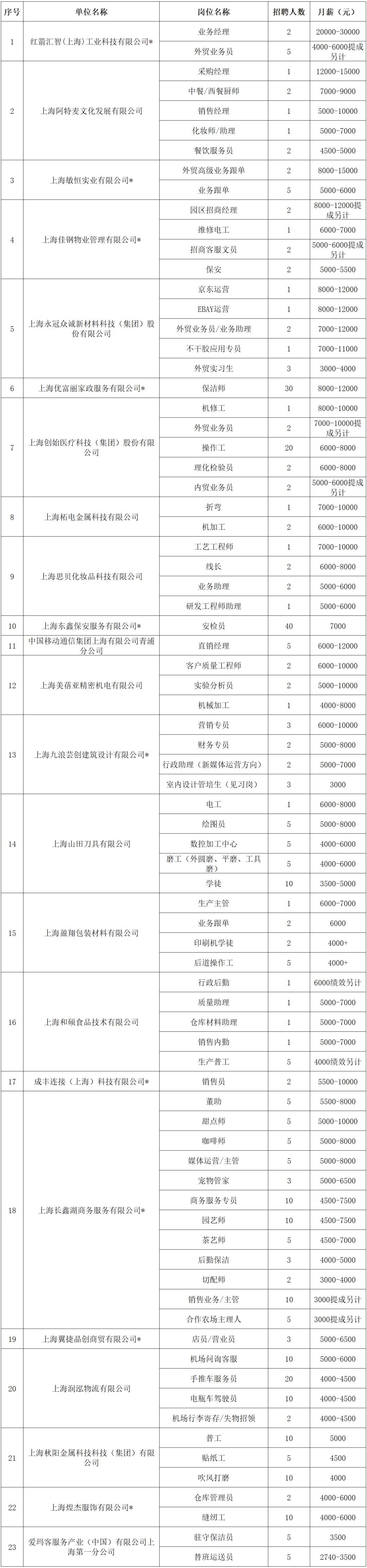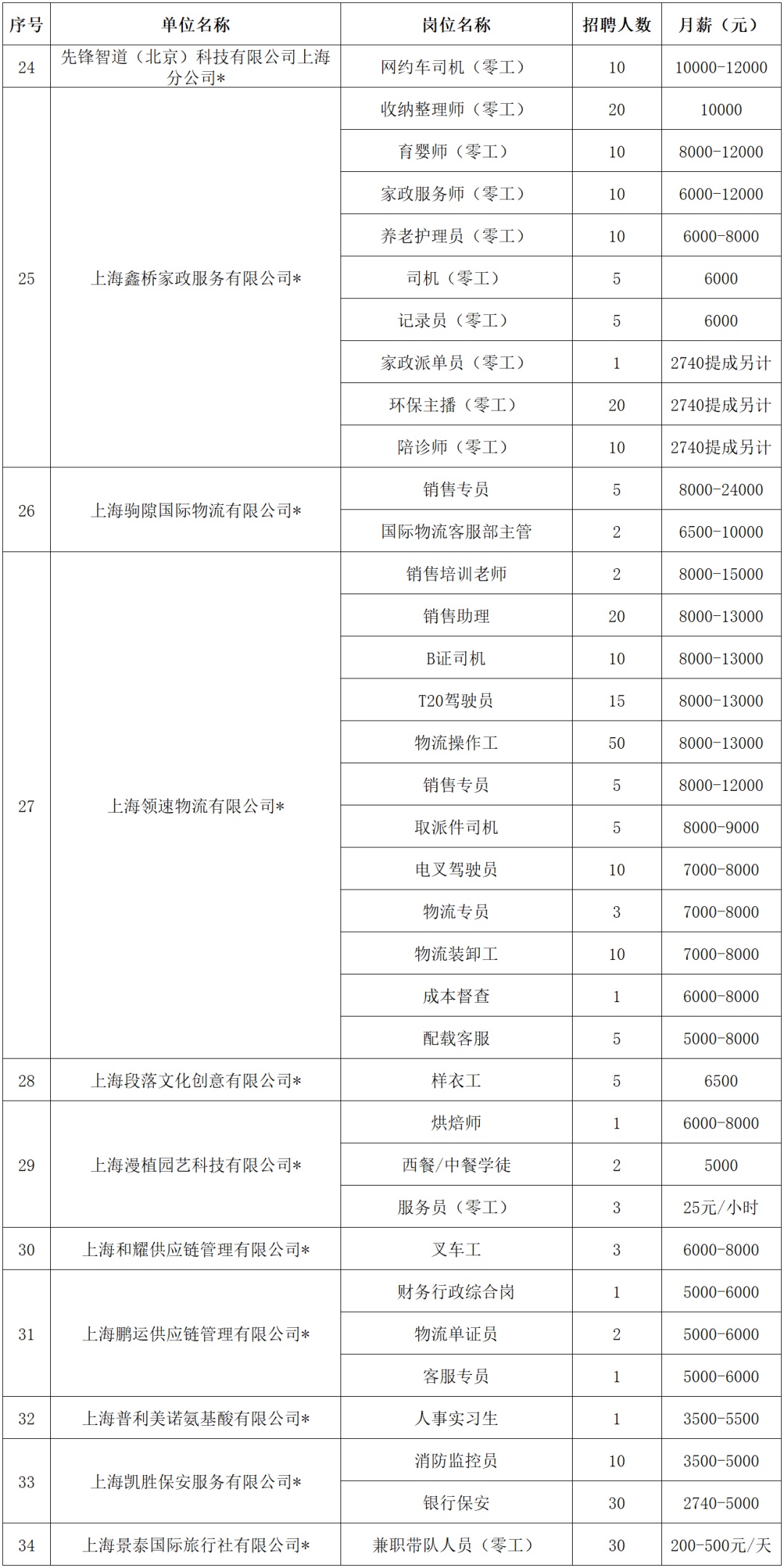 备注:“*”为街镇社区事务受理服务中心、长三角物流零工市场代招企业,现场工作人员可为求职者提供岗位咨询及简历代投服务