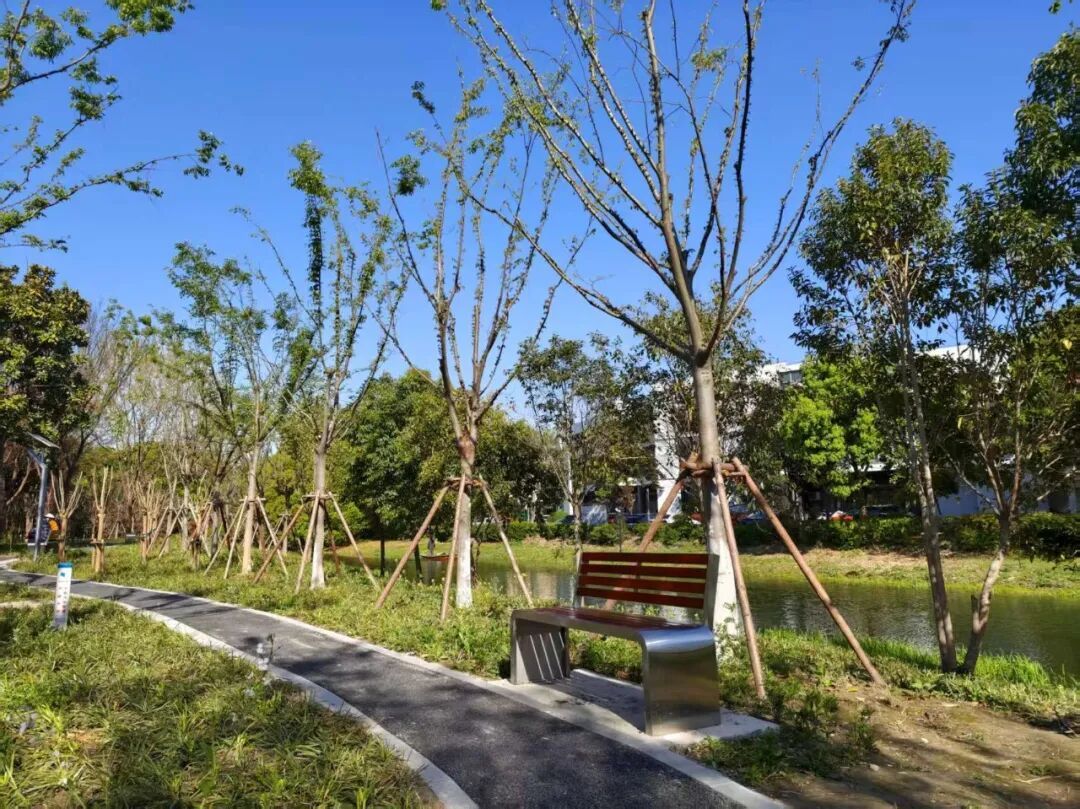 更贴心的是,在注重植物景观塑造的同时,还在绿化带沿线增设了若干休憩座椅,不用刻意寻找,累了就能坐下歇一歇、看一看。这小小的举动,让绿地不再是“只可远观”的景致,更成为居民驻足休憩、观赏风景的“小天地”,实现从“车行路过”到“人行可游”的温暖转变。