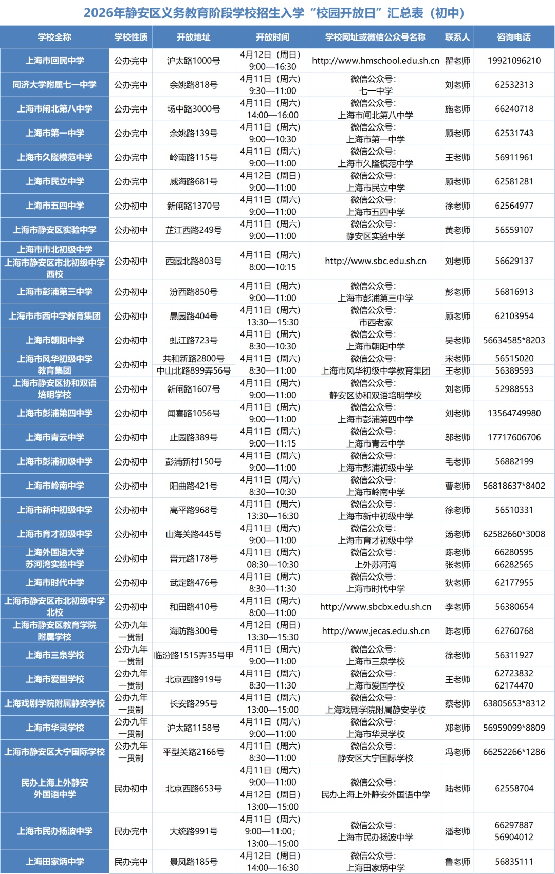 2026年静安区初中