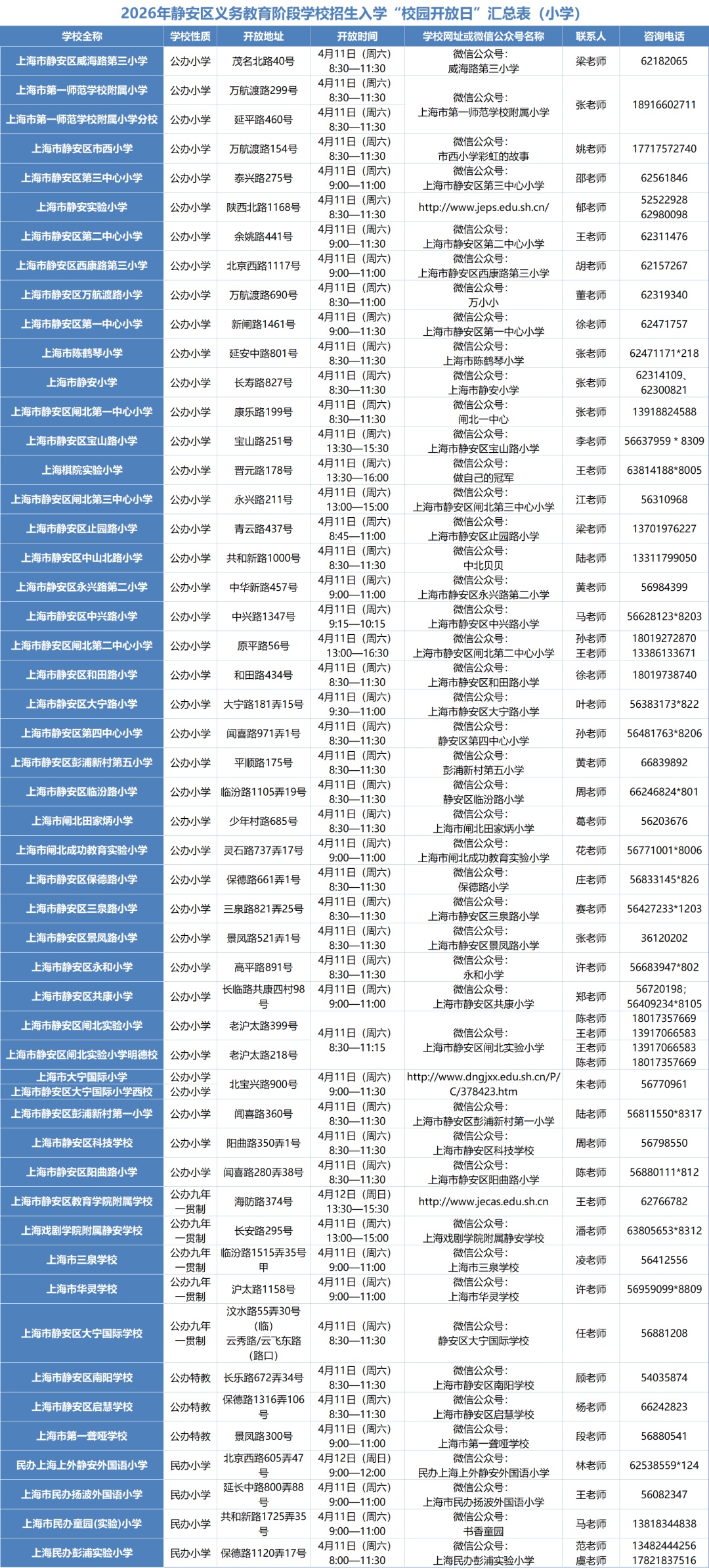 2026年静安区小学