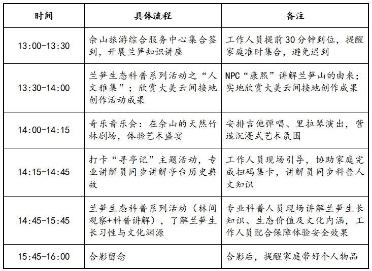 活动含一日险、专业科普指导,参与家庭可获得兰笋文化纪念礼品。