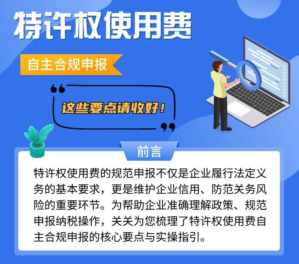 主动学习相关政策,加强应税特许权使用费自主申报合规管理;积极配合海关开展的属地纳税人管理相关工作,接受海关指导,确保申报及时、准确。合规申报一小步,信用守护一大步。让我们共同营造透明、公平、便利的贸易营商环境!