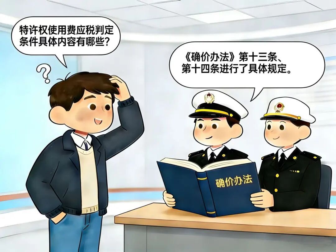 《确价办法》第十一条第三款:“ 以成交价格为基础确定进口货物的计税价格时,未包括在该货物实付、应付价格中的买方需向卖方或者有关方直接或者间接支付的特许权使用费应当计入计税价格,但是符合下列情形之一的除外:1.特许权使用费与该货物无关。2.特许权使用费的支付不构成该货物向中华人民共和国境内销售的条件。”