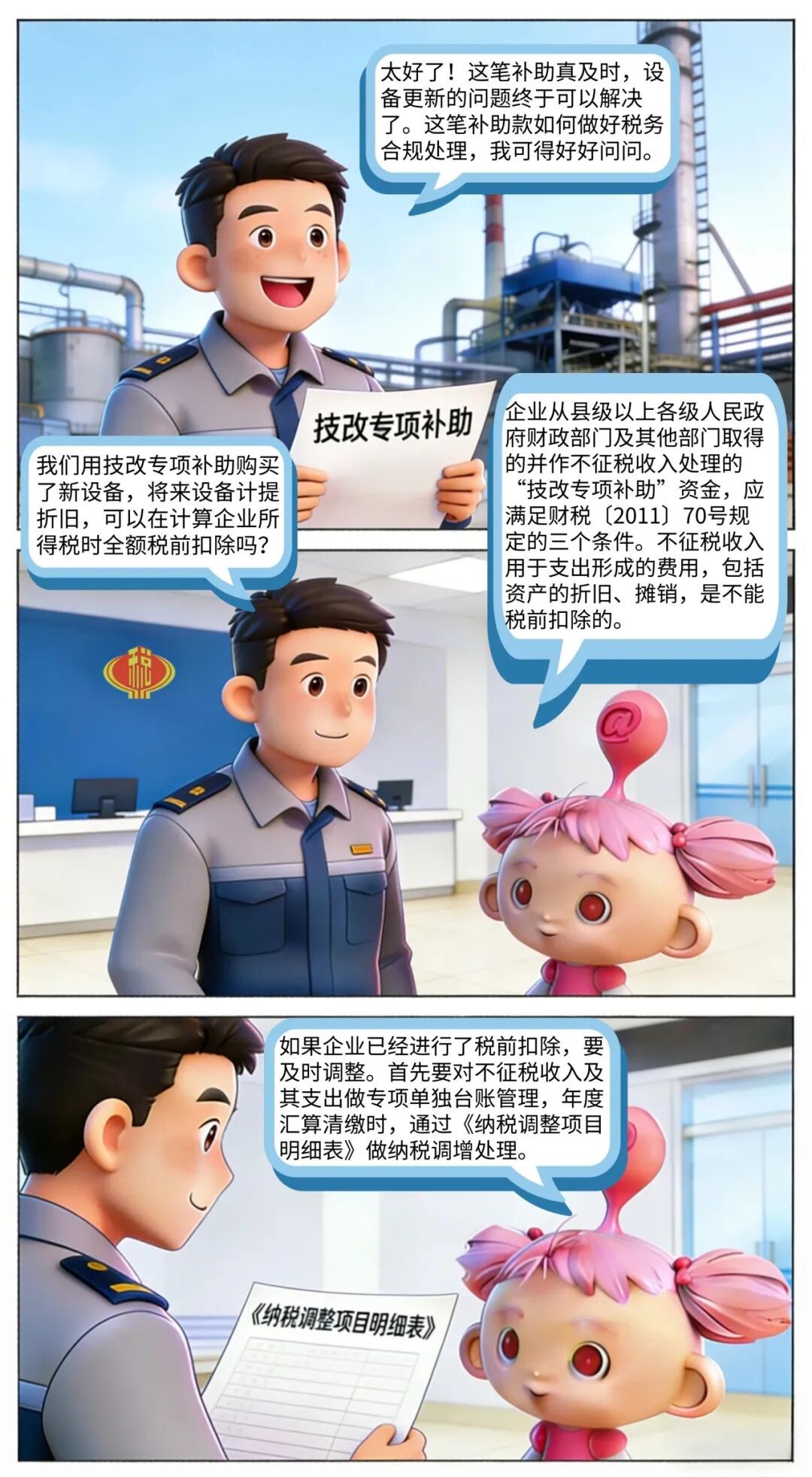 《中华人民共和国企业所得税法实施条例》第二十八条第二款明确:“企业的不征税收入用于支出所形成的费用或者财产,不得扣除或者计算对应的折旧、摊销扣除。”企业应对不征税收入及其支出进行专项、单独的台账管理。当该资金发生费用化支出或购置的资产形成折旧、摊销时,对应的费用额、或资产形成的折旧/摊销额已经用于税前扣除的,在年度企业所得税汇算清缴时,必须通过《纳税调整项目明细表》(A105000)进行纳税调增处理,不得在税前扣除。