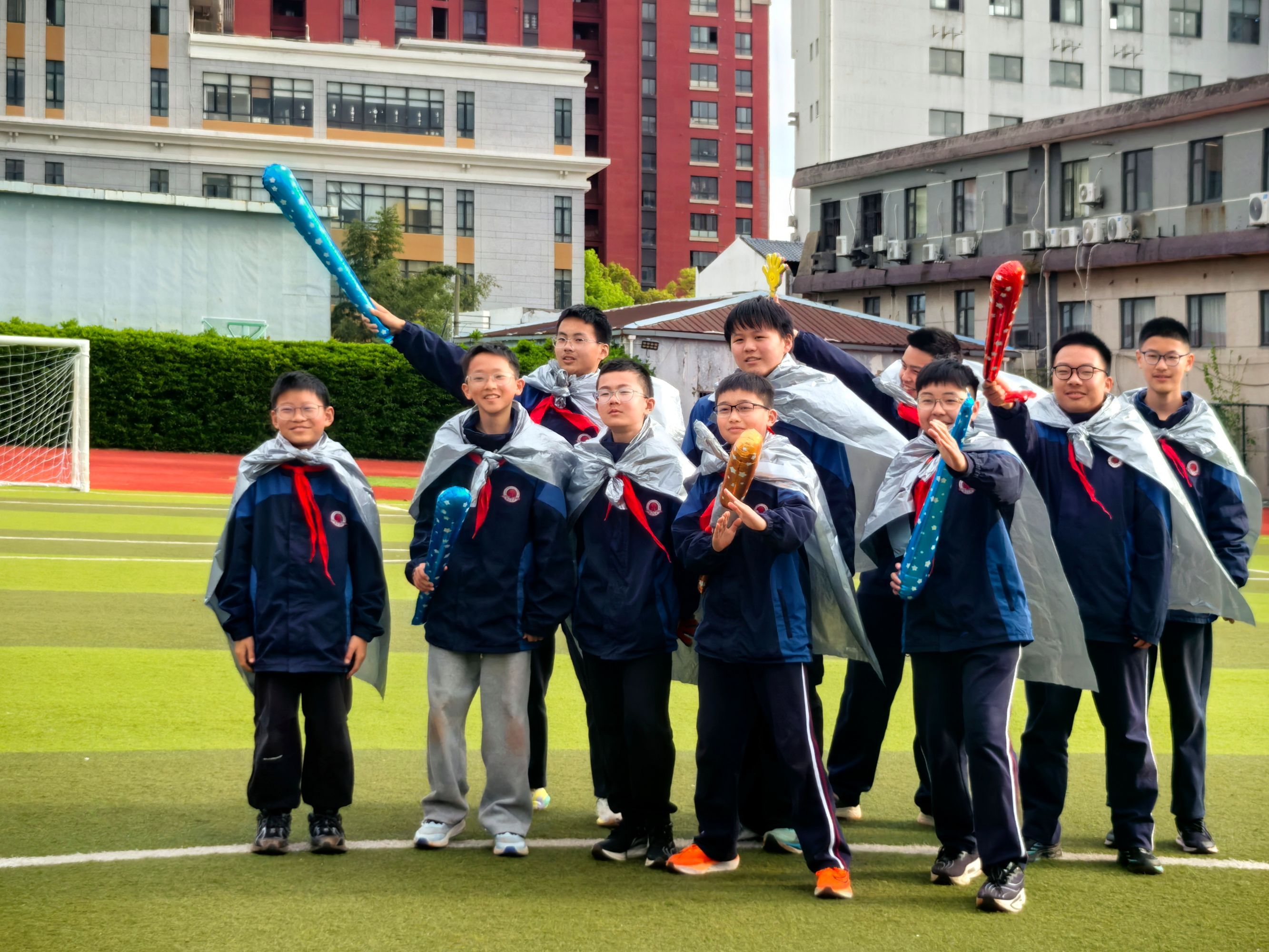 七(2)班几名参加组合唱的学生告诉记者,为了此次演出,班里几名有弹唱基础的同学临时组建乐队,选曲、编排全由自己主导,利用午休和放学后的时间反复磨合,足足准备了两周。“唱的不是歌,是藏在旋律里的心情,是肆意绽放的青春!”一名男生笑着说。