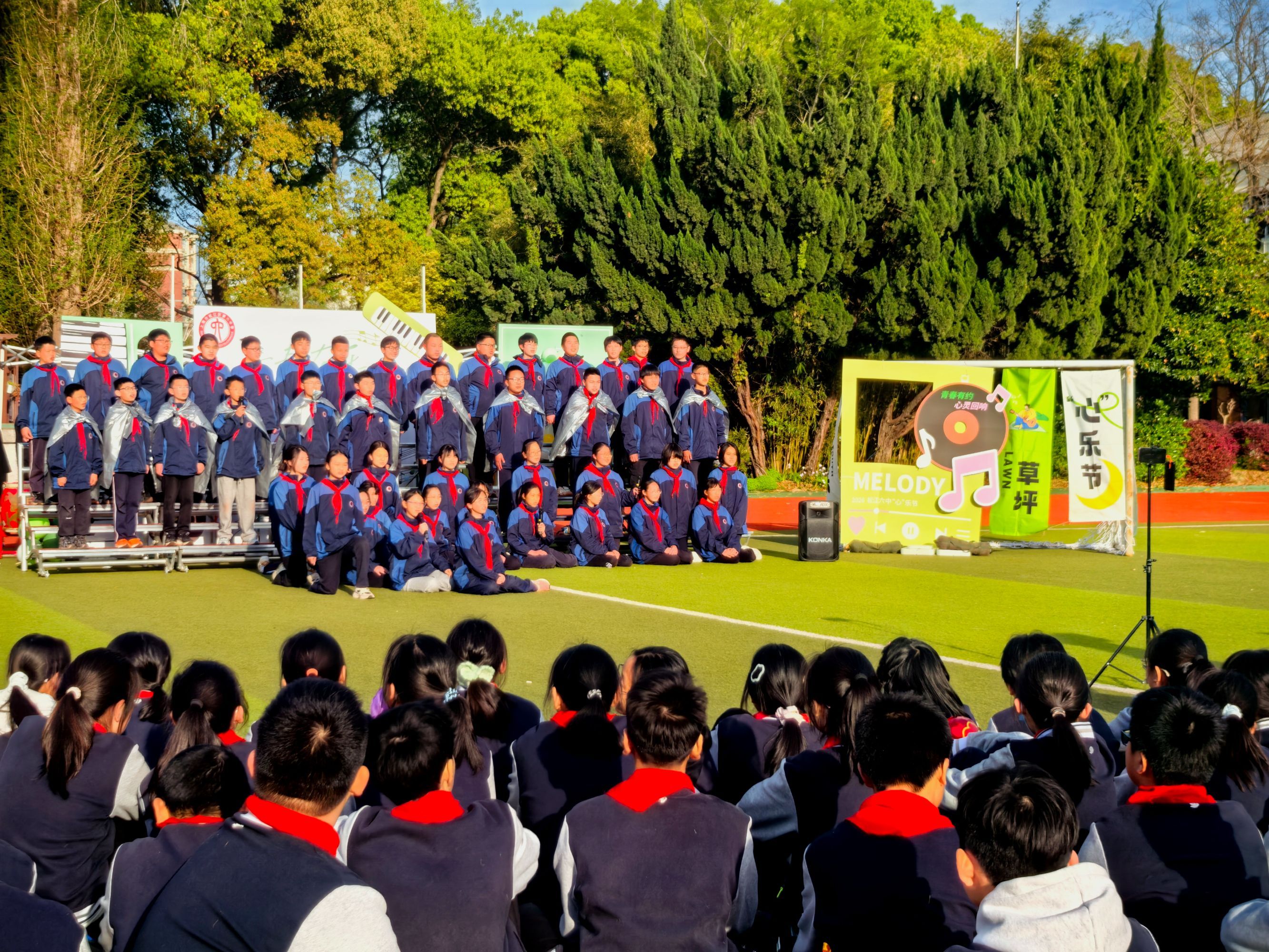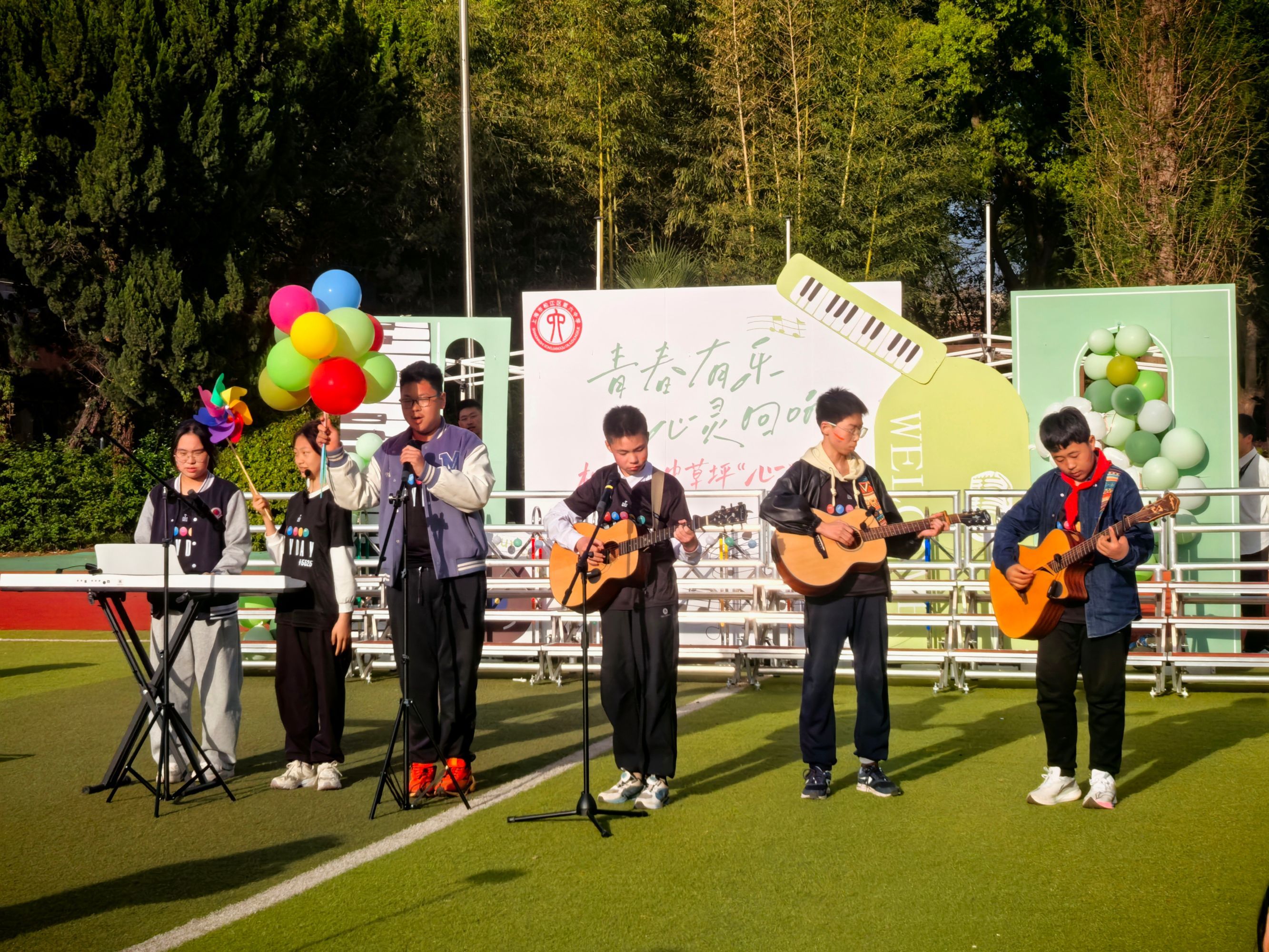 “孩子们的嗓音或许不是最动人的,唱功或许不是最专业的,但能勇敢站上舞台,就很了不起。若干年后再回想,这段在草坪上放声歌唱的时光,定会成为他们青春里最珍贵的回忆。”松江六中校长丁玉表示,青春期是孩子成长的关键时期,难免会面临学业与生活的双重压力,而音乐有着独特的疗愈力量。首届草坪“心”乐节一经推出便广受学生喜爱,接下来,学校会持续搭建更多展示平台,将这一活动打造成兼具德育与美育价值的校园品牌项目。