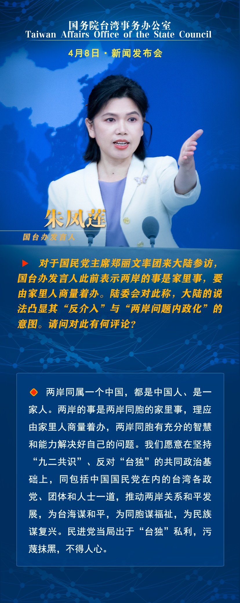 国台办:两岸的事是两岸同胞的家里事