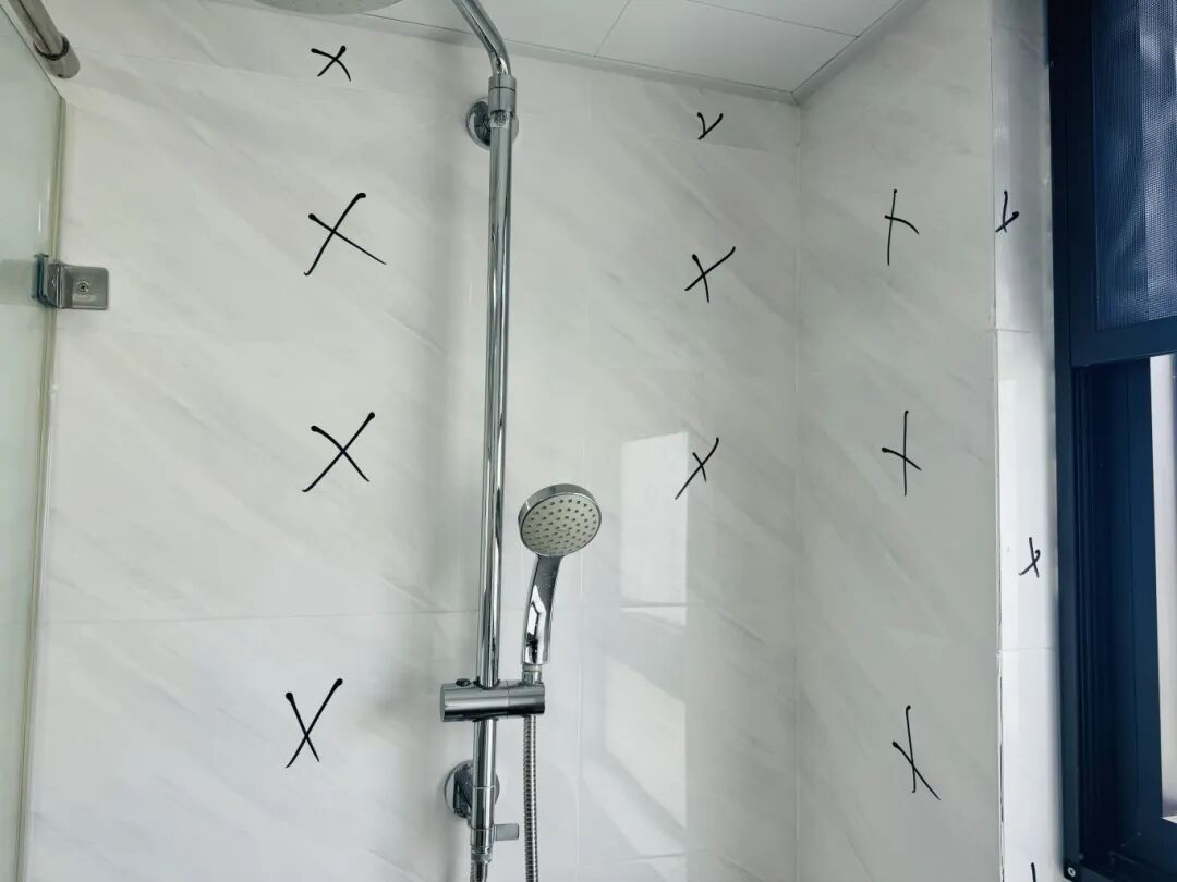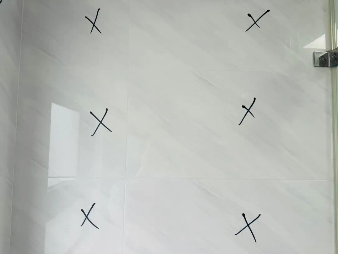 4月7日上午,记者来到新华御府小区杜女士的家中,刚来到卫生间就发现墙面瓷砖有三分之二都用记号笔画上了标记。杜女士表示,这些标记表示瓷砖与墙面之间存在空隙、没有完全贴合,数量达到近百块。