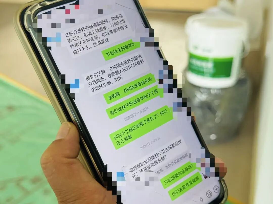 “我们争执的点在于,我认为一定要把地面和墙面一起敲掉、重新贴,不然敲击墙面会震动到地面,而且墙面瓷砖和地面瓷砖连接处,万一漏水,岂不是还要返工吗?”杜女士说。
