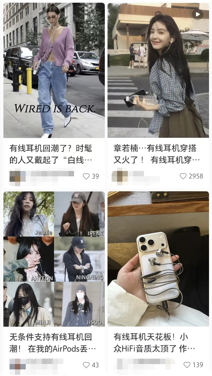 “有线耳机穿搭”相关笔记也超火