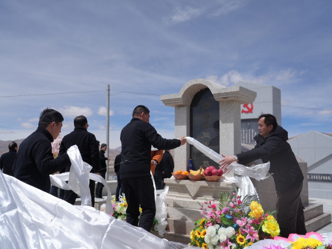 4月4日上午,上海市第十一批援藏干部联络组组长、日喀则市委副书记、常务副市长沈敏带领全体援藏干部,前往定日县为邵海云同志扫墓,缅怀英烈、寄托哀思。