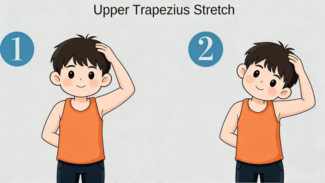 颈侧与上斜方肌轻柔拉伸(不猛拽、不憋气);