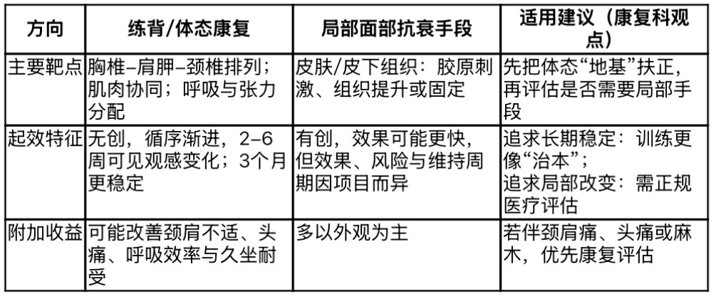 可以把两者理解为不同层面的工作:练背更偏“结构与功能”,医美更偏“局部形态”。下表帮助快速区分: