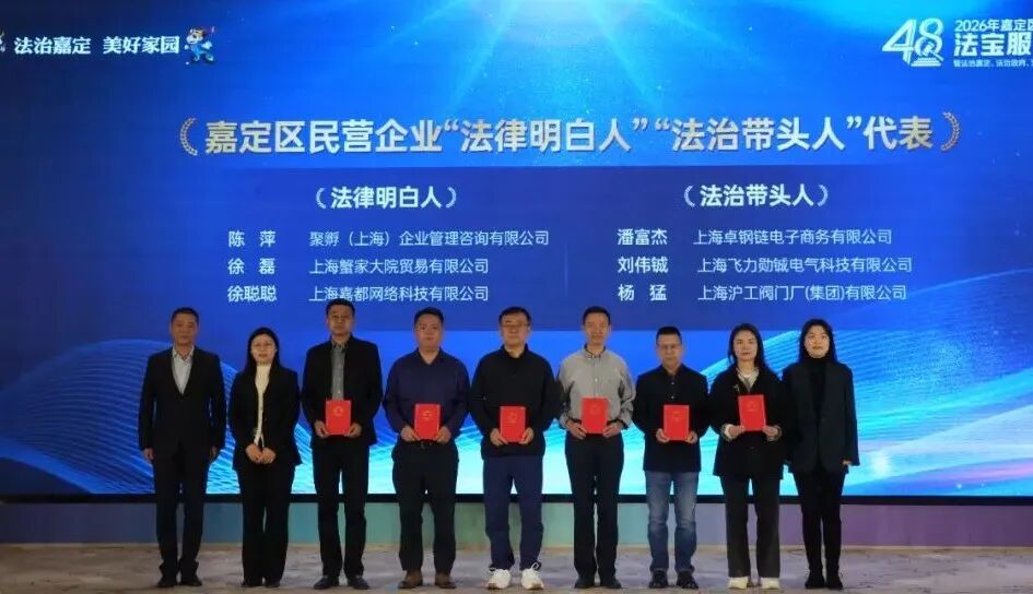 今天(4月8日)下午,2026年嘉定区“4·8法宝服务日”集中行动暨法治嘉定、法治政府、法治社会一体建设系列项目活动发布启动仪式举行。 今年,嘉定共推出一体建设三大系列项目与活动,包括嘉定区2026年度重点普法目录、2026年嘉定区“谁执法谁普法”工作责任制任务清单、2026年嘉定区基层依法治理共同体项目。 活动发布“嘉定区一体化法律服务人才库”。“人才库整合了律师、公证、司法鉴定、法律援助、仲裁、人民调解六大领域法律人才,实现人才资源的集中管理、统筹调配,将助力企业与群众获得更专业、更高效的法律服务。”区司法局律师公证工作科科长高碧瑜介绍。 活动为民营企业“法律明白人”“法治带头人”代表颁发证书。据了解,为深入推进法治护企工作,将法律服务触角延伸至企业生产经营一线,嘉定在全区民营企业中遴选培养了一批法治素养好、群众基础深、服务意识强的“法律明白人”和“法治带头人”。 所谓民营企业“法律明白人”“法治带头人”,他们既是法律法规的“宣传员”,也是矛盾纠纷的“调解员”,更是企业依法决策、合规管理的“参谋助手”,将在畅通政企沟通、化解涉企纠纷、提升依法治企水平等方面发挥重要的桥梁纽带作用。“在今后工作中,我们将带头学法、守法、用法,以法律为准绳,用市场经济寻求各方的双赢多赢,为构建嘉定法治化、市场化、国际化的美好营商环境而努力。”嘉定区工商联常委、上海飞力勋铖电气科技有限公司总经理刘伟铖表示。 眼下,商事调解已逐步成为解决各类商业领域纠纷的新渠道,《中华人民共和国商事调解条例》将于今年5月1日起施行,更是标志着国家在法规层面规范商事调解制度。在此背景下,上海市司法局将“以和为贵”的东方智慧凝练为“大气谦和”的现代调解语言,提出“和”计划,嘉定区在此基础上锻造出“我嘉和解”品牌,助力企业提升矛盾化解效率。现场,上海勇盛汽车租赁有限公司等6家企业代表签下《商事调解“和”计划承诺书》,进一步强化商事调解在优化法治化营商环境中的实践运用。 “在企业经营过程当中,我们会践行好‘调解优先’的理念,也希望有更多的企业加入,用更省心、更高效的方式来解决商事矛盾,共同营造更良好的经营氛围。”上海伟翔众翼新能源科技有限公司副总裁王意中告诉记者。 此外,活动还为桃溪法驿·嘉北高端医疗装备产业园公共法律服务站揭牌;发布“法治护航嘉生态 赔偿修复护公益”——嘉定区生态环境损害赔偿金使用规程;发布《上海市嘉定区以案普法双语漫画读本(五)》;为“嘉小豸议事厅”授牌。 场外,区发展改革委、区经委、区科委、嘉定公安分局等十几家职能部门联合开展了“法治嘉定 美好家园”2026年嘉定区普法依法治理专项行动,为参加活动的企业代表、“法律明白人”“法治带头人”等提供普法宣传、法律咨询服务,并发放宣传资料。另外,近期,12个街镇也将结合“4·8法宝服务日”开展法律服务活动,形成辐射全区的宣传效应,进一步拓宽法律服务可及性,让群众和企业共享公共法律服务体系建设成果。 上海市司法局党委委员、副局长刘言浩,嘉定区人大常委会副主任张伟东,嘉定区副区长丁炯炯出席活动。