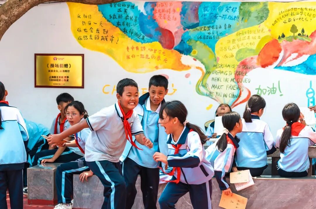 “我相信,终有一天,你也会去到你想去的城市!”“你们努力长大的样子,已让星星亮起。”“希望你自由勇敢,以后可以自在自洽地生活。”操场旁边的白墙上,还手绘了最真挚动人的句子。数百位上海霸王茶姬“茶友”的回信,被一字一句甄选而出,组合成了一幅让人难忘的墙画。当孩子们在操场上奔跑、游戏、上体育课时,抬头便能看见自己写下的梦想,也能看见远方哥哥姐姐们的鼓励与祝福。
