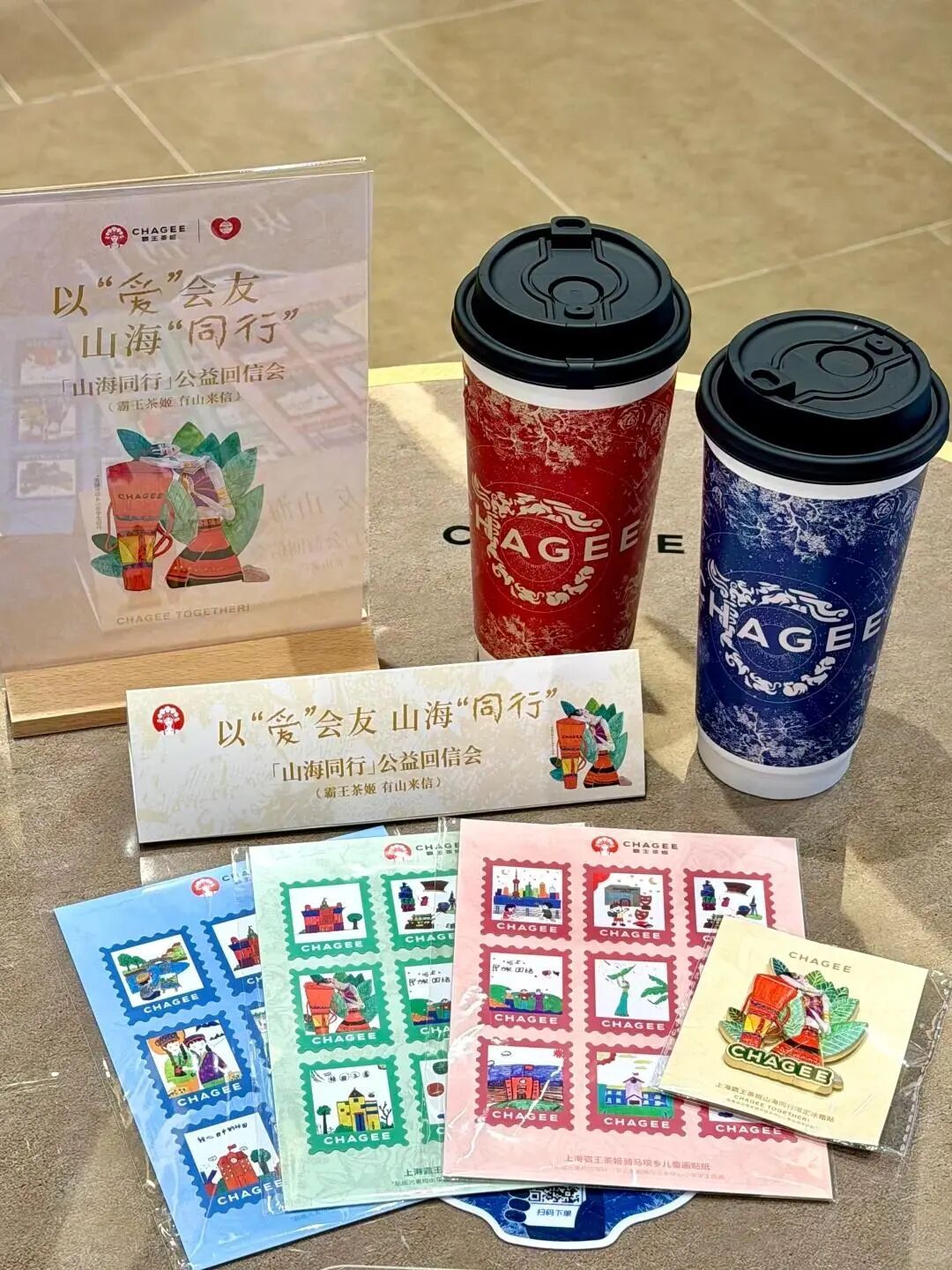 项目开展期间,上海霸王茶姬邀请孩子们创作色彩斑斓、充满童趣与想象力的画作,最后设计成公益周边;在上海,只要购买品牌茶饮,就可获赠公益周边,12余万名霸王茶姬“茶友”参与,无数杯茶饮将微小的善意汇聚成河。与此同时,孩子们的信件被寄到上海,程序员、老师、自由职业者、大洋彼岸的游客等,在回信中真诚地回应每一个天真的问题。