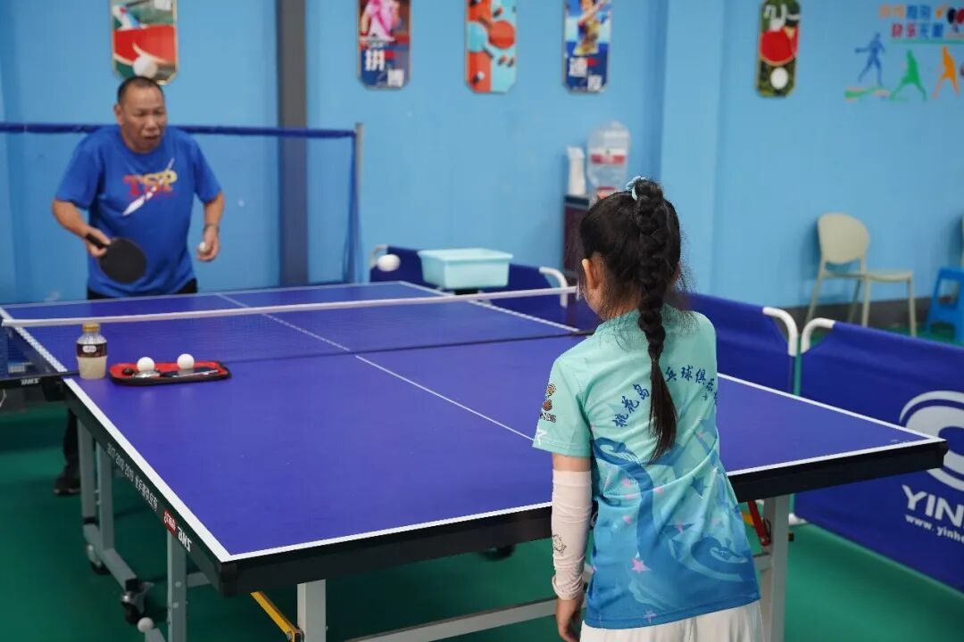 如果说王黎明是俱乐部的“灵魂”,那么余国栋就是青少年梯队的“脊梁”。经俱乐部统一安排,余国栋承担起徐泾第一小学的乒乓球课及社团课教学任务,从最基础的握拍、颠球,到步伐、战术,他把教球工作当成自己的使命。无论刮风下雨,总能看到他在球台旁俯身指导的身影。功夫不负有心人,一批零基础的孩子逐渐在市、区级比赛中崭露头角。然而,命运在2025年给了他沉重一击——余国栋被查出重病,治疗过程痛苦而漫长,但他从未向学校、俱乐部和家长透露过一句退缩的话。2026年,青浦区“阳光大赛”赛场上,他拖着尚未完全康复的身体,在场边嘶哑着嗓子为孩子们布置战术。最终,徐泾一小男子团体斩获全区第三名,女子团体夺得第四名。领奖台上,孩子们哭了,余国栋却笑了,家长们红着眼眶说:“余教练是用生命在教球。”
