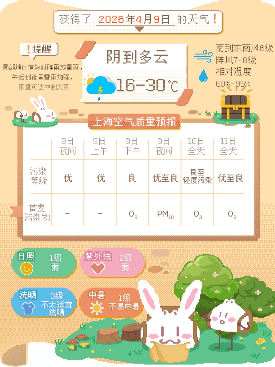 周五雨水暂歇,阳光闪现,双休日春雨重返申城,最高气温下跌至17~19度。下周西南暖湿气流依旧活跃,上海仍多时阴时雨天气。湿度偏高,降水间歇还可能出现低能见度天气。“春天孩儿面,一日变三变”,春季晴雨转换快,请关注临近的预报信息,及时掌握天气动态。