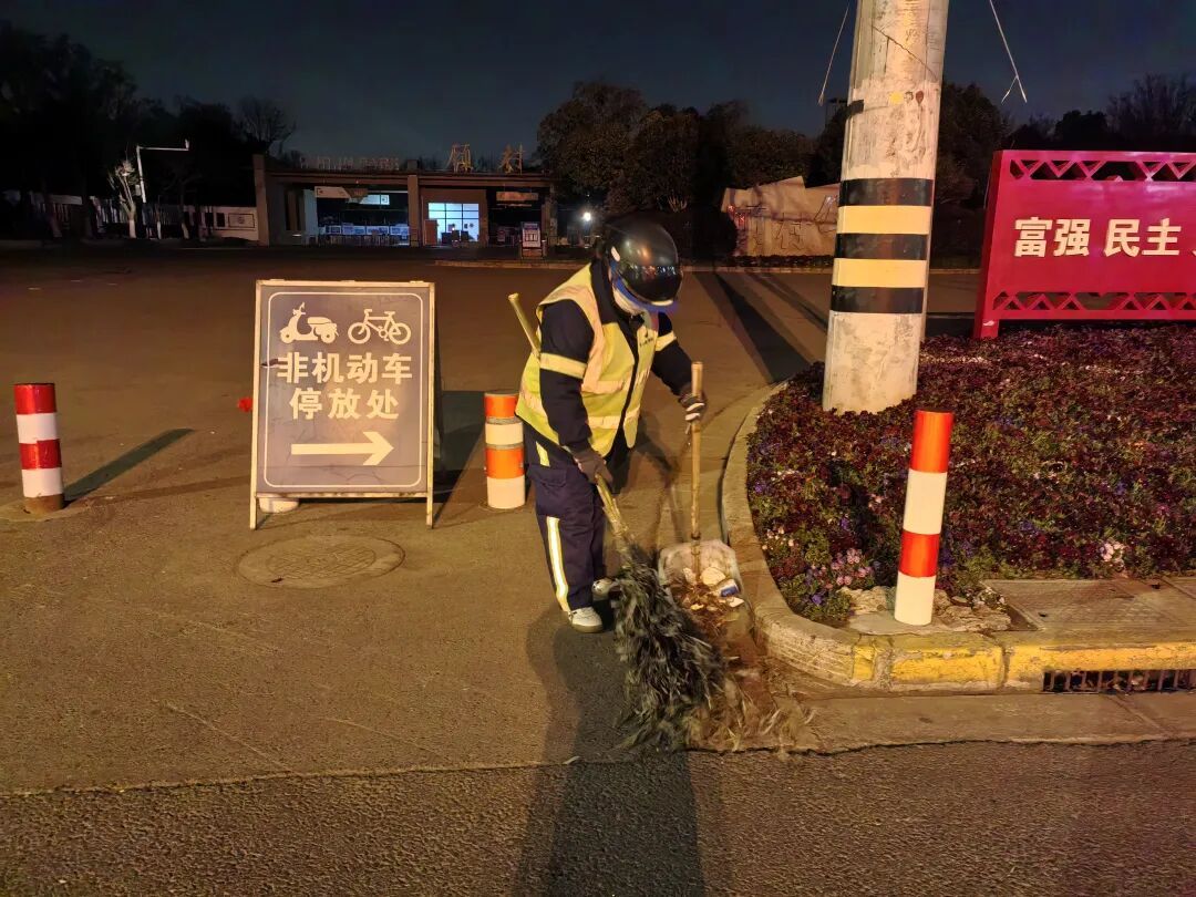 公园“夜游赏樱”活动期间,公园闭园时间延长至21:30,公司制定“月光保洁”方案,将保洁作业时间延长至22:00,安排保洁人员在重点区域周边进行动态巡查作业,保障游客活动区域的即时清洁,及时处置各类突发环境卫生问题,确保夜间游园良好体验。