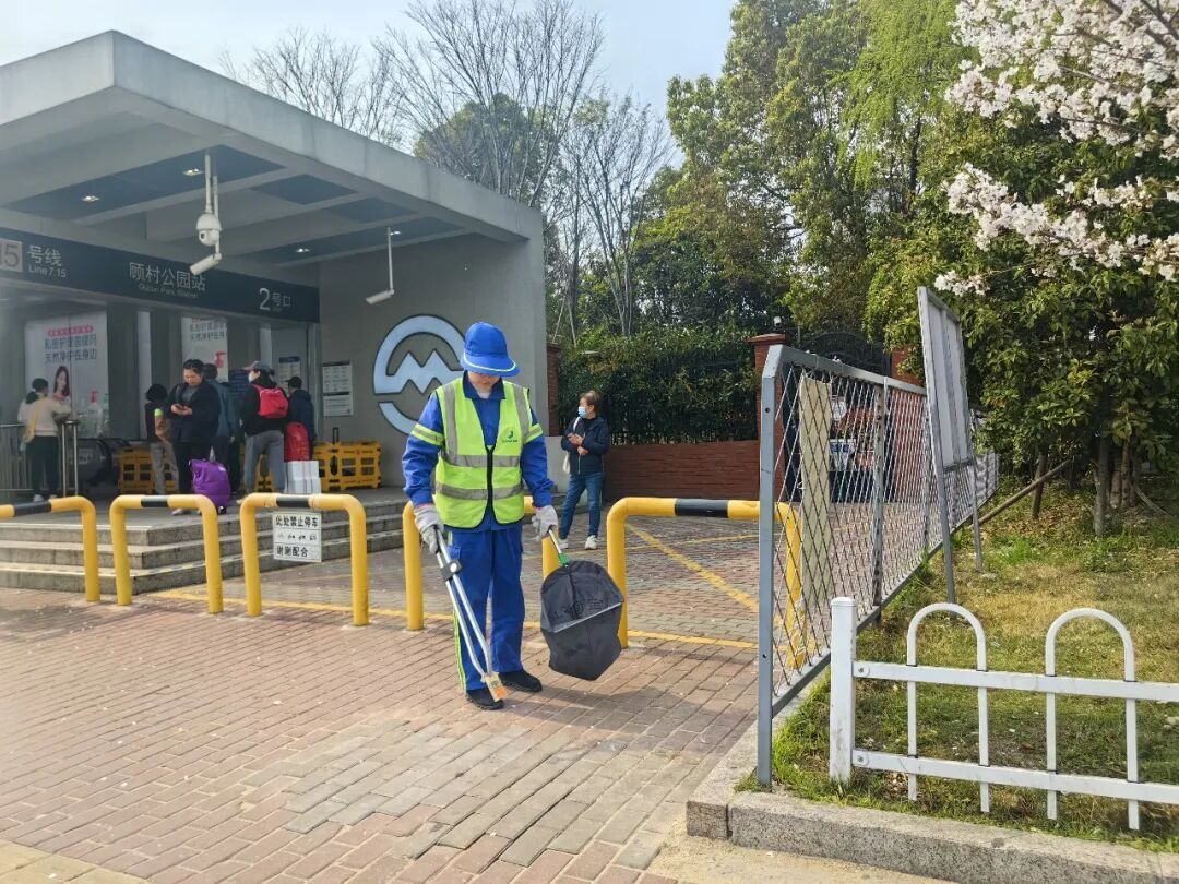 该公司专项调配4辆飞行保洁车投入周边区域作业,建立“随人潮而动”调度机制,充分发挥车辆机动性强、响应迅速的优势,重点聚焦9:00—11:00入园高峰与14:00—16:00出园高峰两个时段,全面覆盖道路及绿化带垃圾捡拾、废物箱保洁及垃圾清运等巡查核心环节。在地铁7号线、15号线顾村公园站出入口周边,安排专人定点值守完成即时保洁,重点清理出站人流携带的食品包装、纸巾等瞬时垃圾。