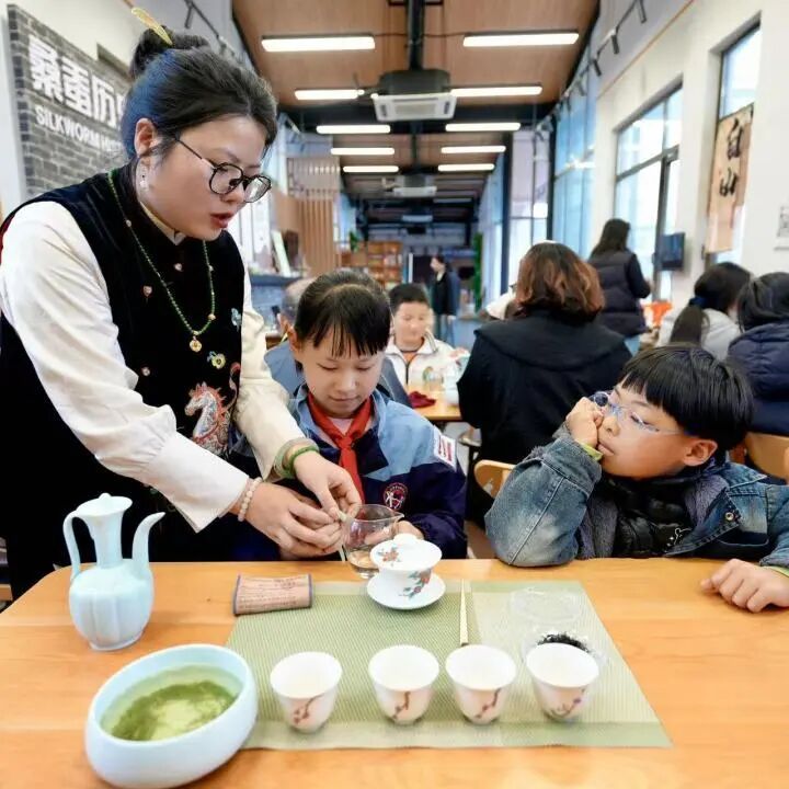 罗溪书院耕织园扎根乡土,用节气串联起农耕文化、民俗体验与道德教化,让孩子们学会泡一杯茶,更是让他们在自己的家乡,重新发现那些看似平常却深具分量的文化符号。一片茶叶,一盅春茶,浸润着孩童的职业梦想,连接顺应自然、尊祖敬贤的节俗智慧,也让中华文明的悠长脉络在乡野间生生不息、薪火相传。