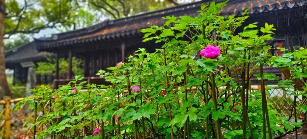 经园林匠人精心养护,今年这株百年牡丹花苞数量达78朵,创下近年花量新高。玫红色花朵层层叠叠、雍容华贵,在绿叶映衬下更显端庄。