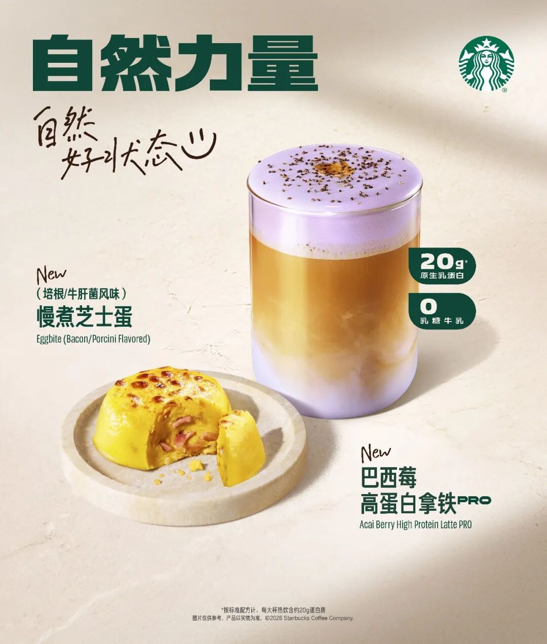 据介绍,星巴克高蛋白拿铁PRO系列采用行业高品质的6.0高蛋白0乳糖牛乳,每100毫升牛乳中富含6克优质原生蛋白,还自带特有的清甜奶香。一杯大杯高蛋白拿铁PRO富含20克左右的优质蛋白,相当于3个鸡蛋的蛋白质含量,可满足蛋白质每日需求量的三分之一。