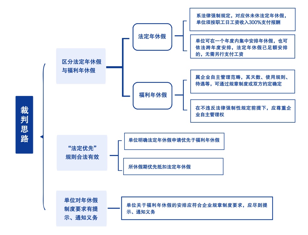 为吸引人才、激励员工,一些企业根据生产经营情况及公司企业文化,在国家法定年休假之外,安排职工享受高于法定年休假的福利年休假。这种带有企业福利性质的年休假与法定年休假存在明显区别,在司法实践中亦适用不同的裁判规则。