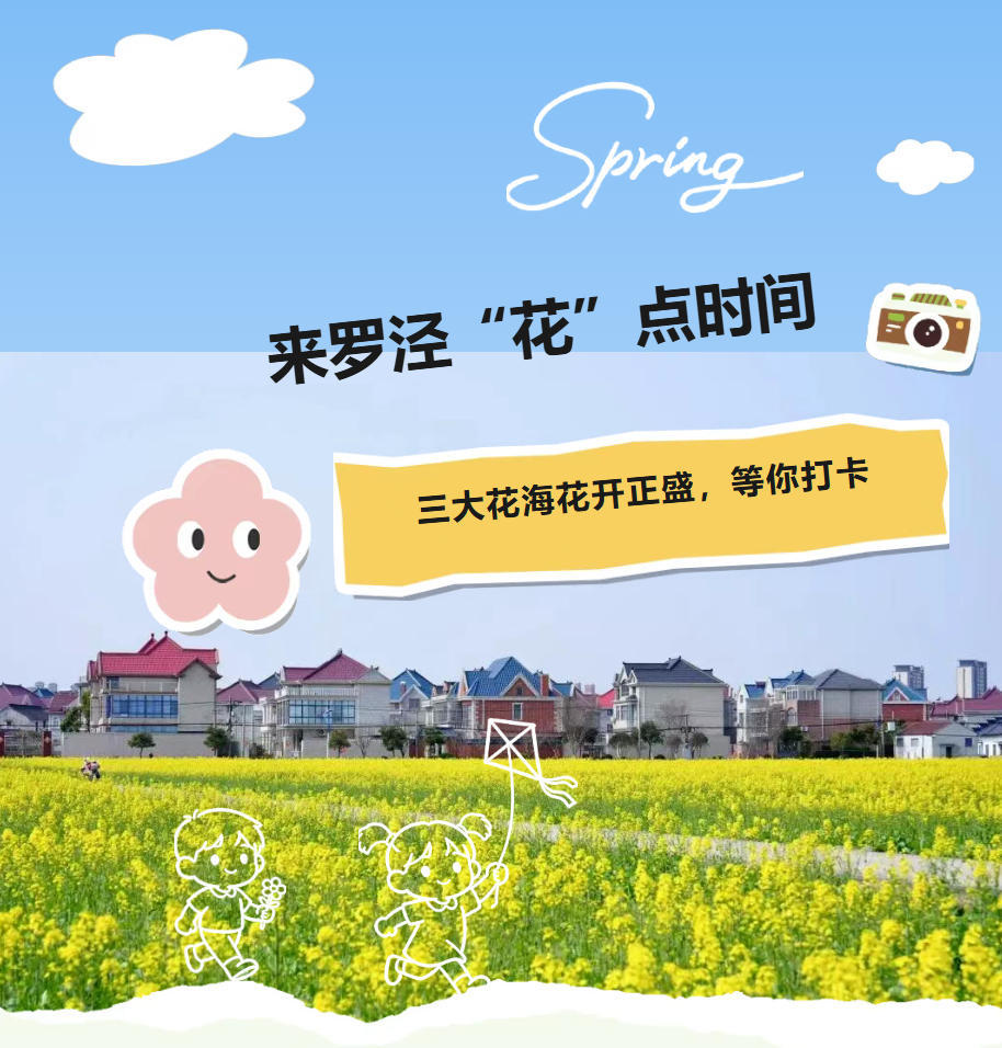 作为罗泾春花里的“顶流”,油菜花早已相继绽放,以最热烈的姿态将一整个春天的生机温柔赠予每位来访的游客。千亩金黄顺着田垄流淌,与远处的蓝天、近处的村落相映成趣,构成一幅绝美的田园画卷。站在这花田里,我们不再是行色匆匆的赶路人,只需负责放松身心,把自己交给自然,便能收获满满的治愈与欢喜。