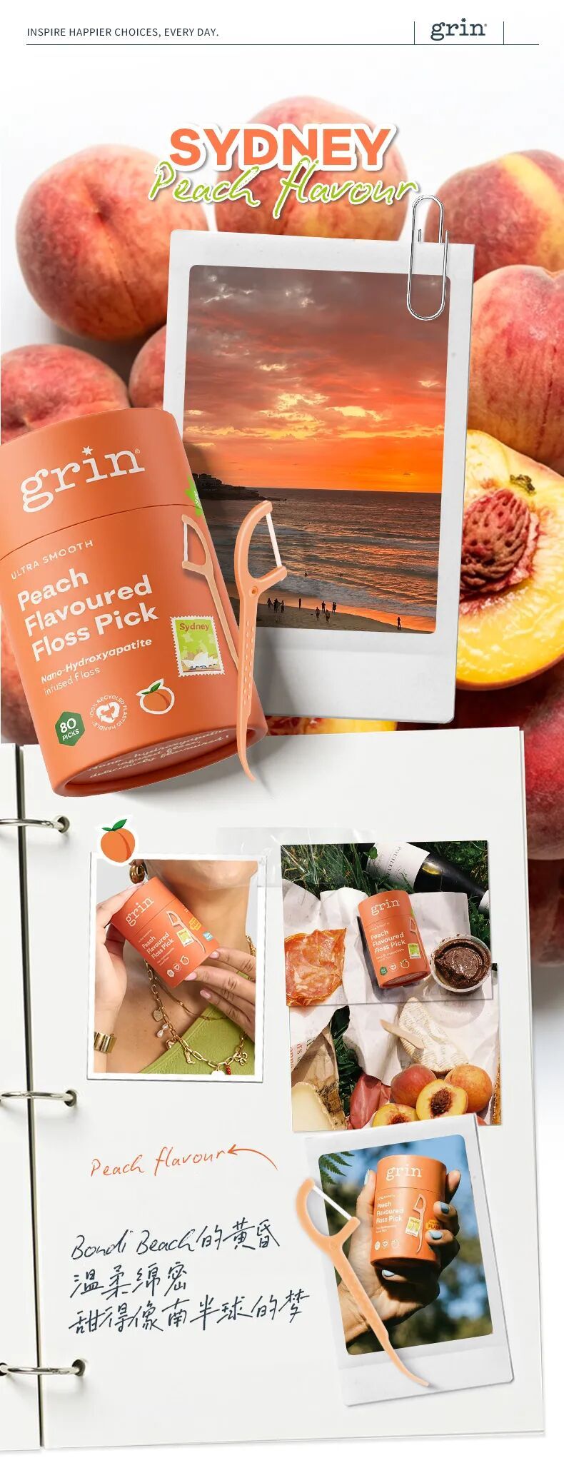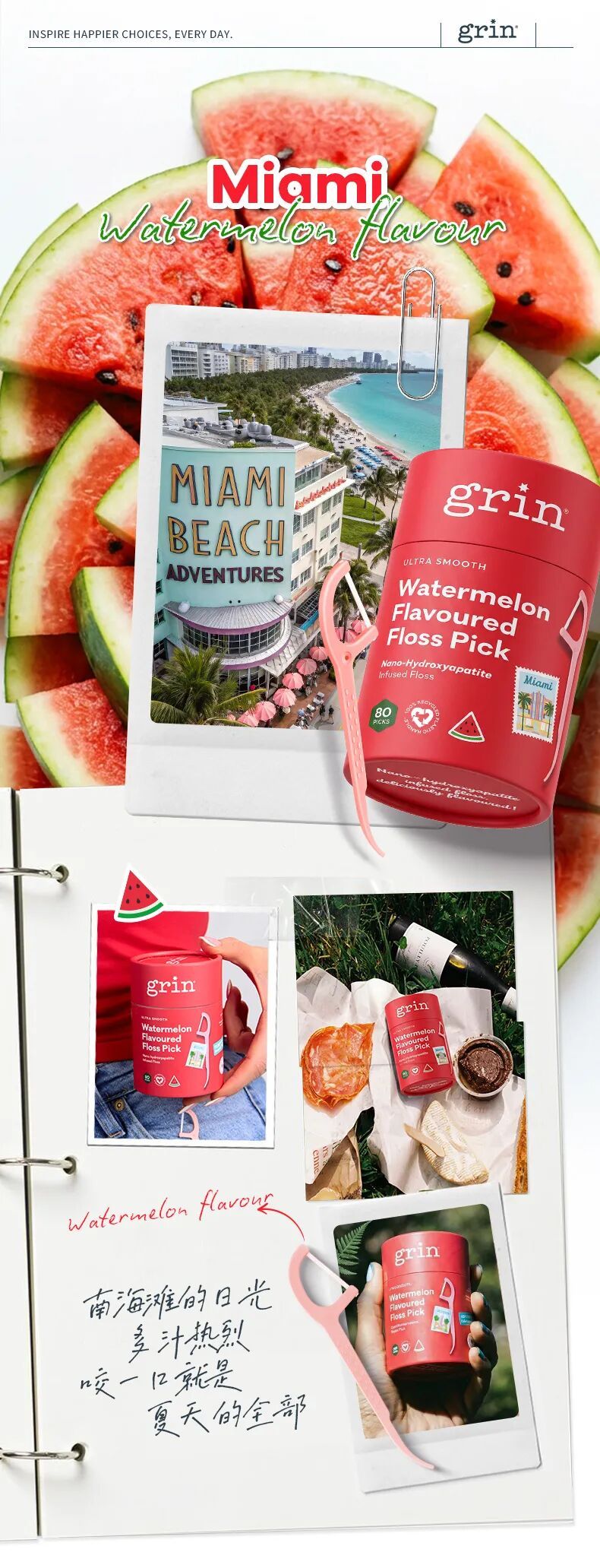 塞纳河畔午后的葡萄香、泰晤士河边的青苹果香、南海滩日光的西瓜香、邦迪海滩的桃子香,让日常口腔护理从“任务”变成一件有味道、有画面感的趣事,一场关于远方与夏天的轻旅行。
