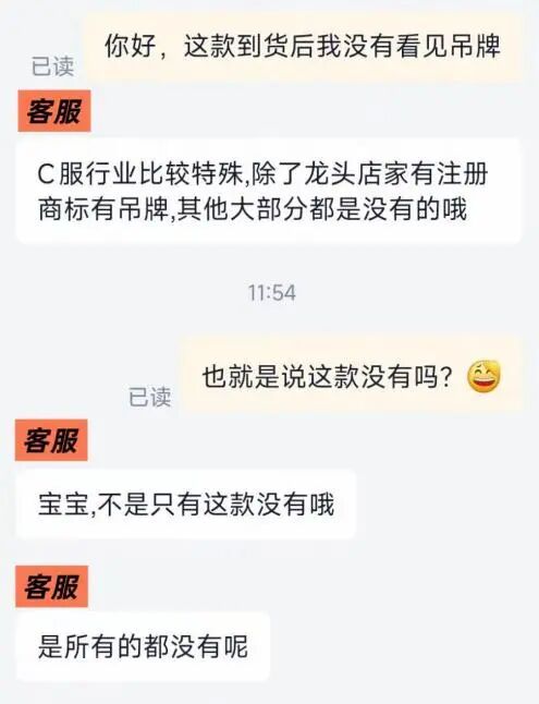 我们在买样时发现,除了官方/授权店和个别头部商家的样品标签标识齐全外,大部分二次元服装店的样品都缺少吊牌、合格证、成分标,并且坦然表示“行业都这样”。这种“常态”侵犯了消费者的知情权、选择权,让消费者无法判断服装的安全性和面料品质,埋下健康隐患。相关厂家应严格遵守《产品质量法》和GB 5296.4-2012《消费品使用说明 第4部分:纺织品和服装》强制标准,如实告知产品信息,强化合规意识。建议消费者树立版权意识,优先在官方/授权店、头部正规商家购买产品,注意查看执行标准、成分标识。