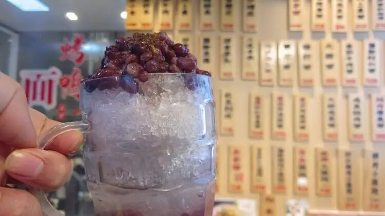 记者近日走进沧浪亭盛兴汤圆,注意到收银台的价目表当中已经出现了红豆刨冰品种。记者点了一杯,刨冰是用玻璃杯盛装的,刨冰上面和底部都有赤豆,最上面是桂花点缀。与塑料杯相比,玻璃杯能更好展现刨冰的层次和冰晶质感,拿在手里也很有感觉。