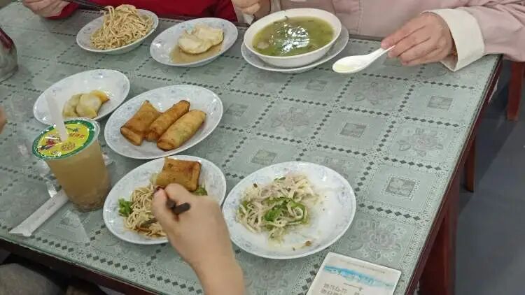 在店内,记者遇到了正在吃冷面和冷馄饨的蔡女士和周女士,她们俩是好友,这次都是在4月初从国外回沪探亲。周女士在小红书上看到普陀的这家四如春有冷面供应了,就和蔡女士相约而来。周女士则告诉记者,小时候她家就住在卢湾的四如春旁边,每到夏天,她经常拿着钢盅锅子去买冷面。蔡女士笑着说,吃到了久违的老味道,在海外吃不到这么正宗的冷面和冷馄饨。