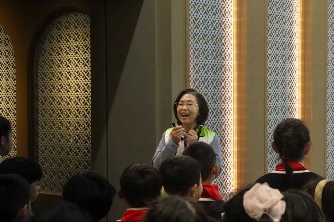 退休三年的余贻贻,已在博物馆做了多年的志愿服务,但今天以“五老”成员的身份带教孩子们,也让她有了全新的体验。“面对孩子,讲解必须‘变频道’。”为了不让孩子们走马观花,她提前数日查阅资料,将枯燥的考古语汇转化成童趣化的语言。看着孩子们睁大眼睛好奇探索的神情,余老师感慨道:“我觉得自己像是一个‘牵手人’,一头牵着历史,一头牵着未来。”