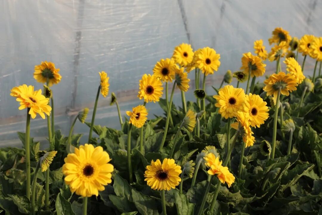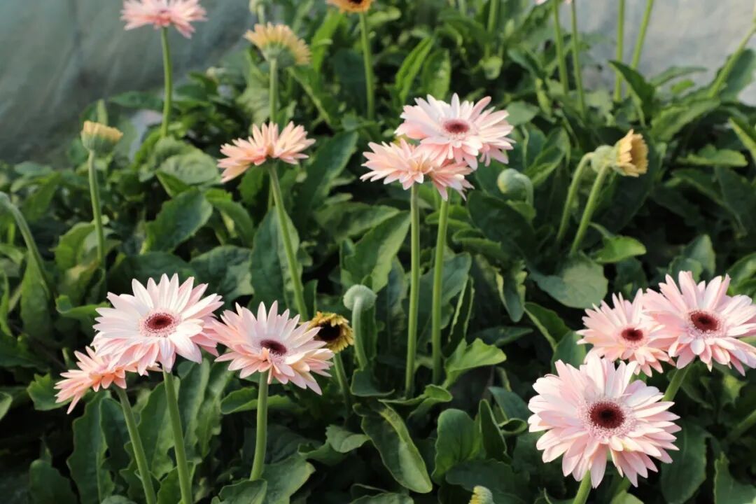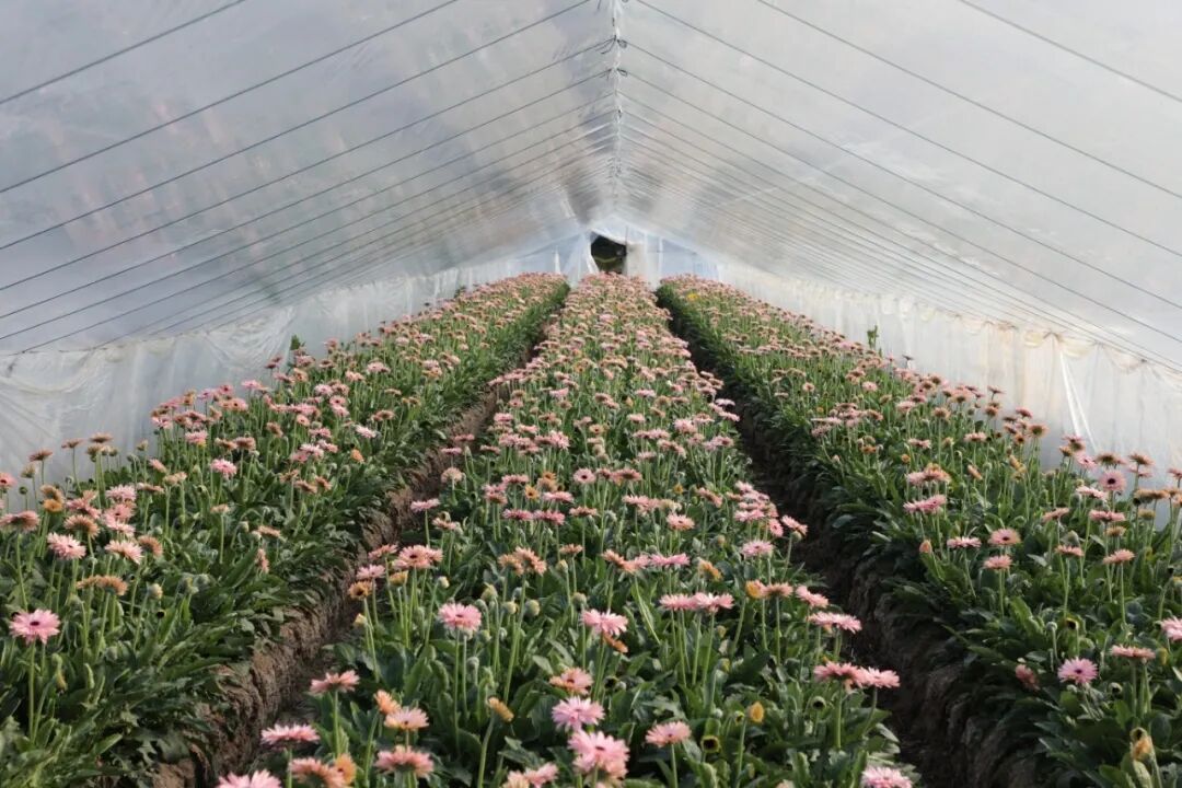 春风送暖,草木新生,奉贤区头桥街道东新市村的大棚里,一派姹紫嫣红的生机景象。这片以非洲菊种植为主的基地,占地约20亩,由房先生一家精心打理,成为乡村振兴路上一道亮眼的风景。
