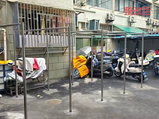 在专项资金支持下,华阳物业主动扛起国企担当:出资加装不锈钢晒衣架,贴心解决居民日常晾晒刚需;通过物理隔离科学划定停车区域,从源头规范车辆停放;集中清理长期占用公共空间的僵尸车,盘活闲置公共资源,实现“晾晒有空间、停车有秩序、环境大提升”的治理效果。经过整治,该处停车秩序明显改善,公共空间整洁清爽,居民急难愁盼问题得到妥善解决。