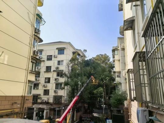 新乐小区内部分乔木因生长年限较长,枝叶日渐繁密,长期遮挡居民采光,影响小区整体环境。对此,新程物业主动扛起国企物业责任,依托集团专项资金支持,积极对接新泾镇林长办,在专业指导下科学制定方案,稳步有序开展修剪作业。
