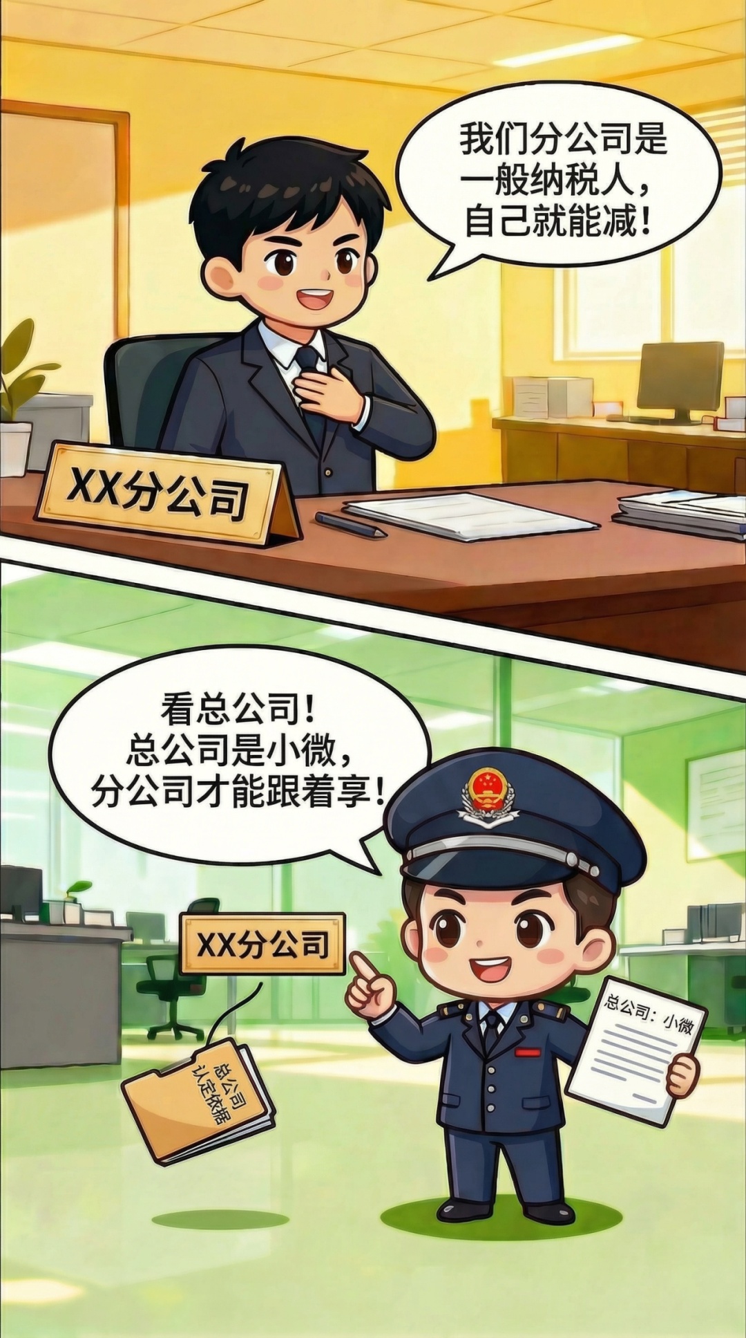 企业所得税实行法人税制,由总机构统一计算包括汇总纳税企业所属各个不具有法人资格分支机构在内的全部应纳税所得额、应纳税额,以法人机构为整体判断是否属于小型微利企业。企业所属各个不具有法人资格的分支机构,登记为增值税一般纳税人的,应当根据总机构是否属于小型微利企业来申报享受减免优惠。