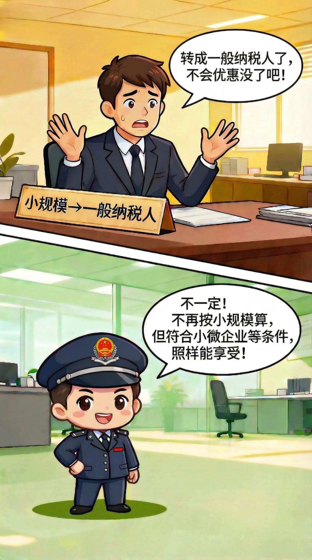 增值税小规模纳税人按规定登记为一般纳税人的,自一般纳税人生效之日起不再按照增值税小规模纳税人适用“六税两费”减免政策。但是上述纳税人如果符合小型微利企业和新设立企业的情形,或登记为个体工商户,仍可申报享受“六税两费”减免优惠。