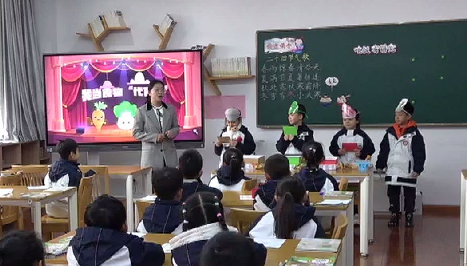 课前,学生背诵《二十四节气歌》,师生交流“北方吃饺子”“南方吃汤圆”的习俗,自然引出课题《吃饭有讲究》。通过发布“争章”任务,有效调动了学生的探究兴趣。