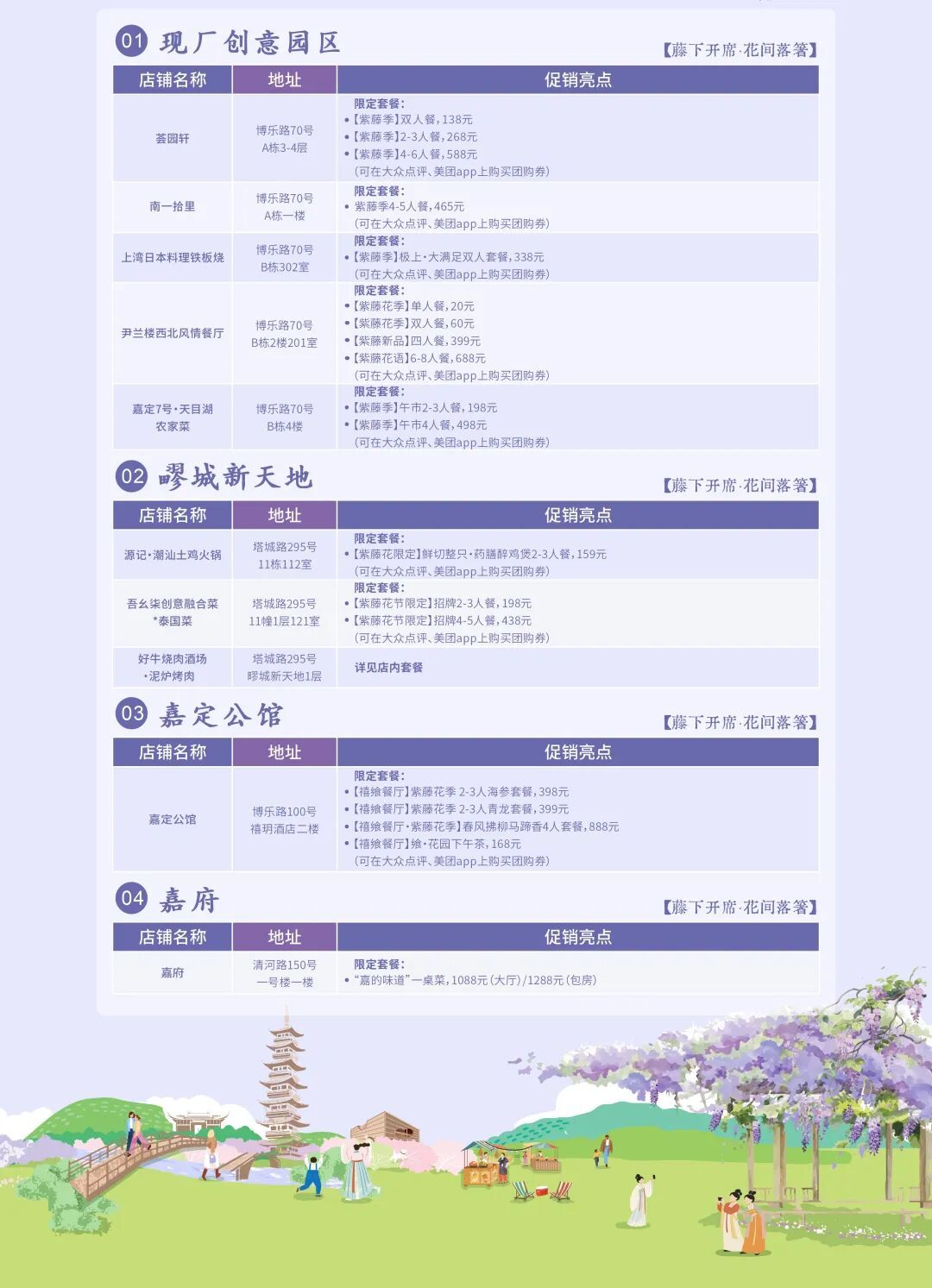逛完古镇,正好犒赏味蕾。嘉定公馆等知名商家已备好紫藤花限定联名套餐,让视觉与味觉的双重盛宴,成为这个春天最难忘的回忆。