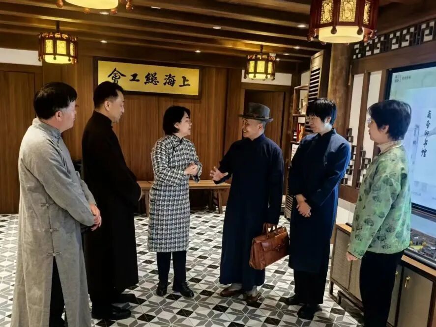 循着先辈足迹缓步前行,党员们来到承载着百年工运记忆的湖州会馆。作为上海工人第三次武装起义指挥部旧址,湖州会馆的青砖黛瓦间沉淀着岁月的厚重,史料展墙与铜版画无声诉说着百年工运风云。大家在行走中溯源红色历史,以一身华服致敬百年前为救亡图存奔走呐喊的革命先驱,完成了一场跨越时空的精神对话。
