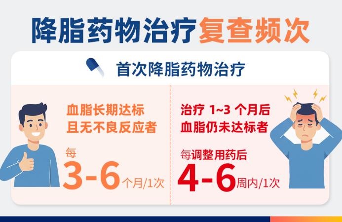 降脂治疗过程中也需要定期复查,评估治疗效果和有无不良反应,确保安全和疗效。
