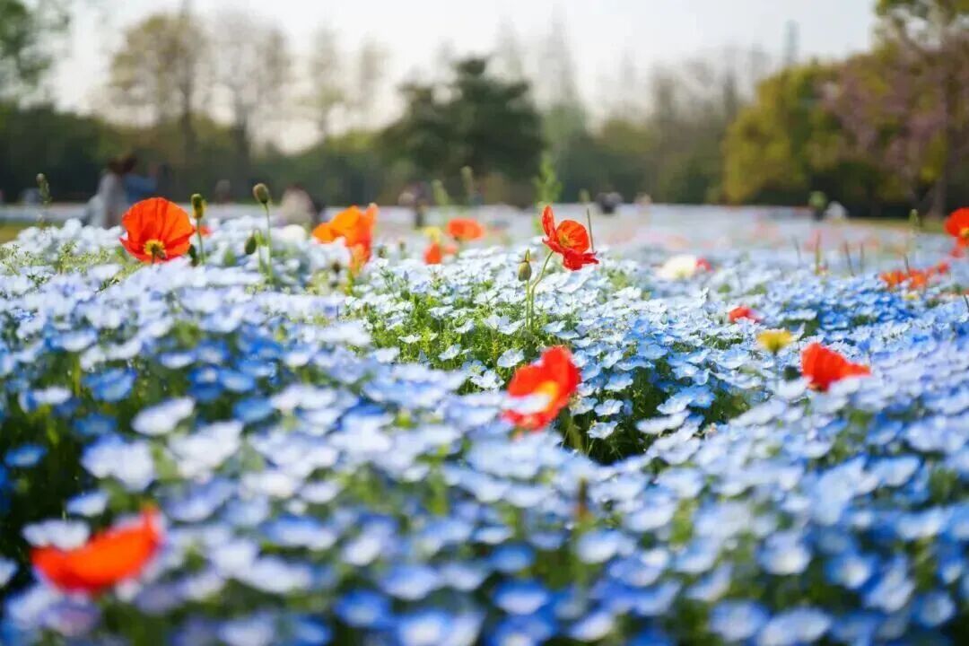 预计在四月中下旬,还会迎来喜林草的盛放,为了让大家更好地沉浸式赏花,公园预留了专门的赏花小径,届时,蓝白花海与春日绿意相映,氛围感十足。