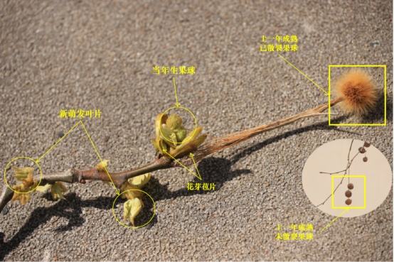 本市的杨树、柳树行道树占比相对较少,因此果毛飘絮主要来源于悬铃木。悬铃木果实是由多数的小坚果集合成球形的聚花果,小坚果基部围有长绒毛,俗称为果毛。