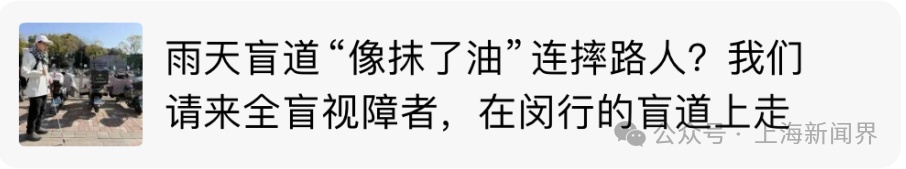 《雨天盲道“像抹了油”连摔路人?我们请来全盲视障者,在闵行的盲道上走了走》