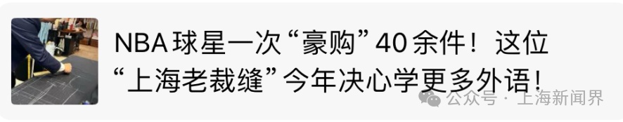 《NBA球星一次“豪购”40余件!这位“上海老裁缝”今年决心学更多外语!“要向世界输出上海的生活方式!”》