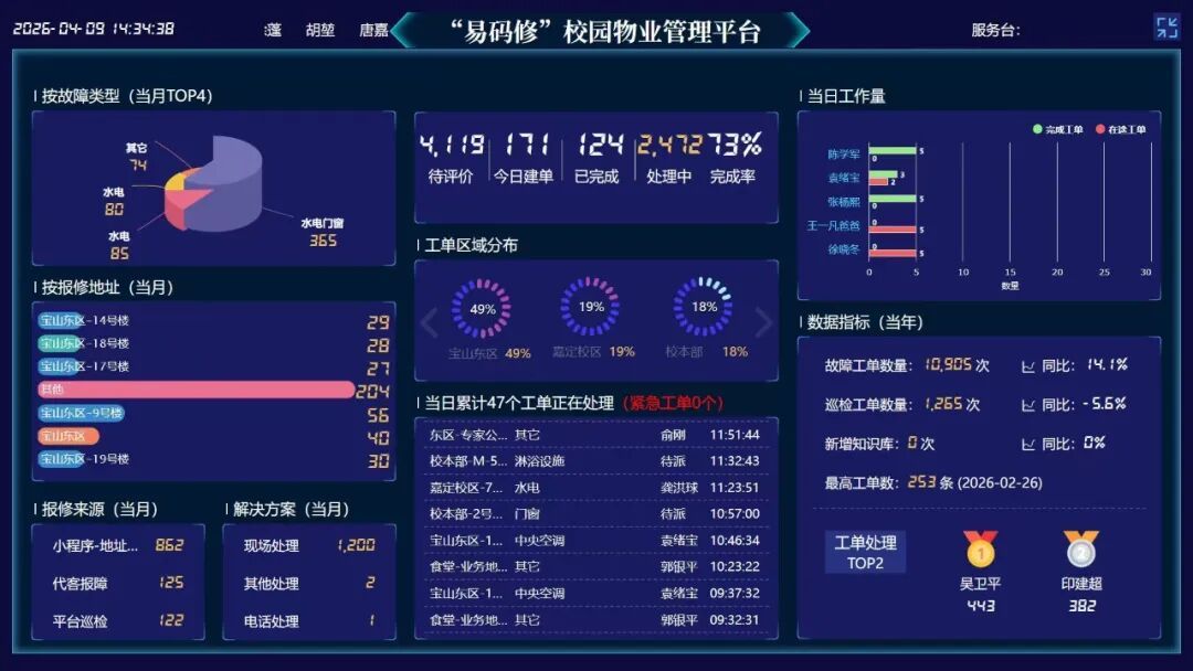 平台初步建成时,维修师傅们并不买账——觉得平添了工作量。胡堃没有强制推行,而是一遍遍演示:学生拍照上传,师傅看一眼图片就知道带什么零件,不用白跑;夜间工单自动排优先级,紧急问题优先处理,不用手忙脚乱。“随着时间推移,他们发现确实节约了时间和工作量。”这种由理解到接纳的过程,比任何强制要求都管用。